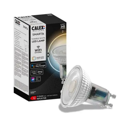 Calex Smart Tuya Wifi LED Spot GU10 PAR16 5W 345lm 90D - 822-840 Afstembaar Wit | Dimbaar