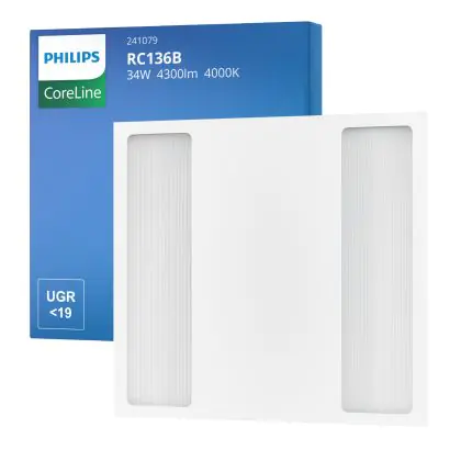 Philips LED Paneel Coreline RC136B 25/34W 3100-4300lm - 840 Koel Wit | 60x60cm - UGR <19 - Selecteerbaar Wattage - 3 Uur Noodverlichting - W3