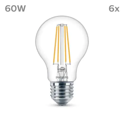 Voordeelpak 6x Philips Lamp LED E27 Peer Filament Helder 7W 850lm - 840 Koel Wit